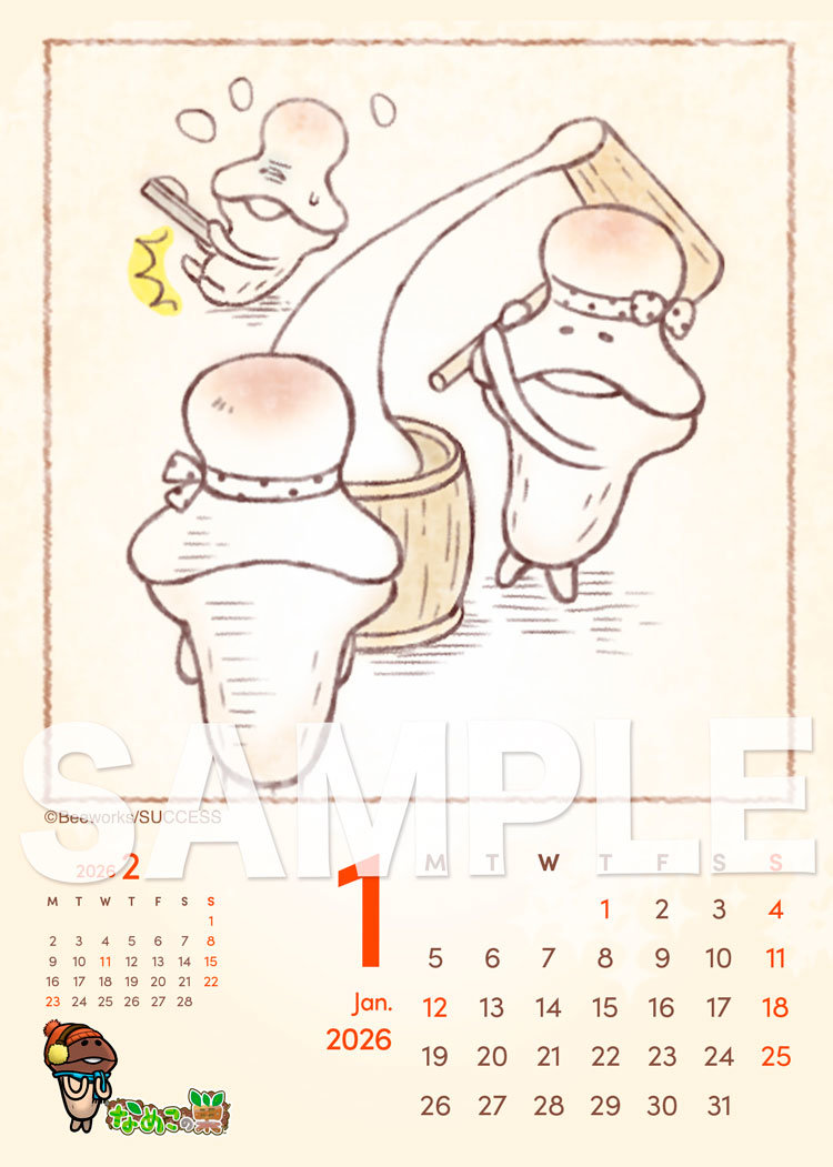 26年1月の「なめこのカレンダー&ポストカード」は、12月30日(火)から好評発売中。